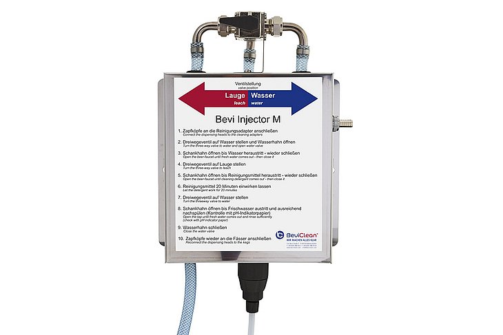 Die chemische „Standreinigung“ kann mit dem Bevi Injector M unabhängig von der Leitungslänge durchgeführt werden. Dank der präzisen Dosierung durch einen Proportionaldosierer ist eine einfache chemische Standreinigung auch bei vielen und langen Leitungen problemlos möglich.