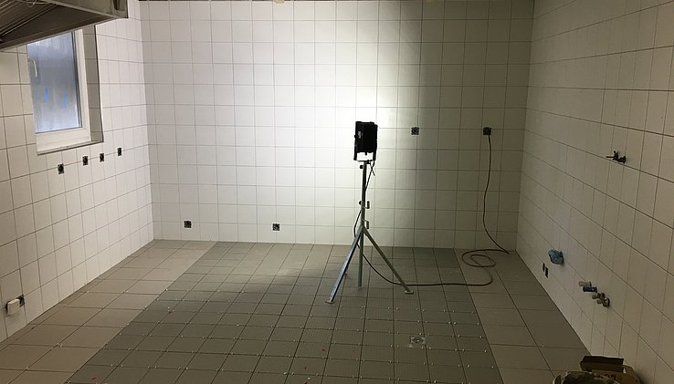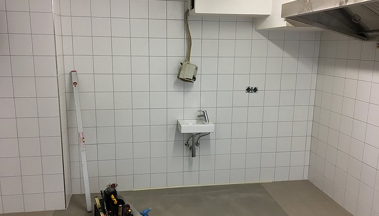 Ebenfalls im Erdgeschoss befindet eine großzügige Küche mit leistungsfähiger Abzugsanlage. An die Küche grenzt ein Kühlraum und ein kleiner Abstellraum.