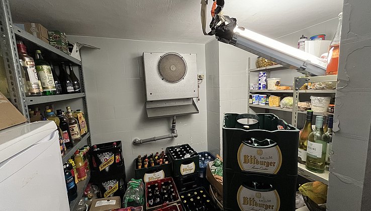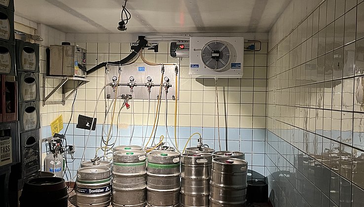 Im Untergeschoss befinden sich die sanitären Einrichtungen, Heizungskeller, Abstellräume und ein weiterer, sehr großzügiger Bierkeller mit moderner Kühlung.