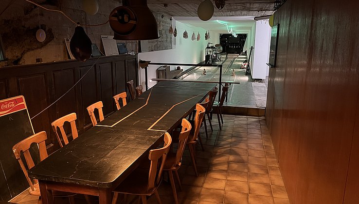 Zusätzlich zu den hier angegebenen Flächen steht bei Interesse ein weiterer Kellerraum mit ca. 200qm zur Verfügung, in dem früher zwei Bundeskegelbahnen betrieben wurden. Eine der beiden Kegelbahnen wird renoviert und wäre technisch voll funktionsfähig.