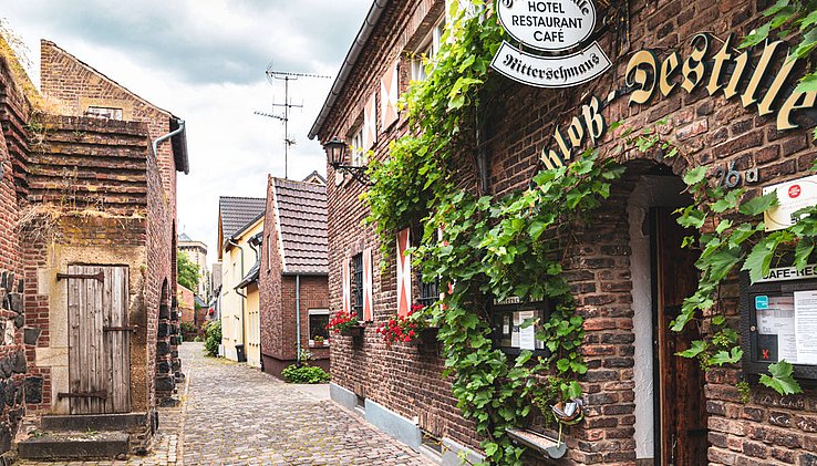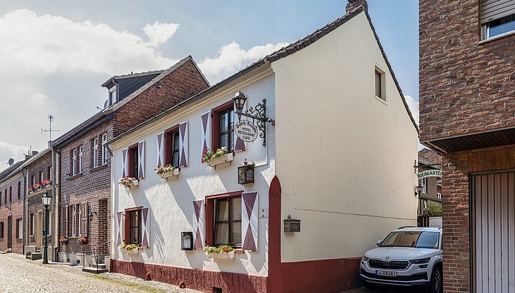 Nicht nur Zonser lieben Zons! Die ehemalige Zollfeste Zons gehört mit ihrer wehrhaften Stadtmauer und den Toren, Türmen und der Mühle aus dem 14. Jahrhundert zu den besterhaltenen spätmittelalterlichen Befestigungsanlagen des Rheinlands. Das mittelalterliche Städtchen mit seinem pittoresken Labyrinth enger Straßen in der historischen Altstadt bietet eine große Vielfalt an Gastronomie, aber auch die Kultur kommt hier nicht zu kurz. Das örtliche Kreismuseum ist weit über die Stadtgrenzen hinaus bekannt, ebenso lockt die Freilichtbühne mit regelmäßigen Open-Air-Veranstaltungen. In der historischen Altstadt finden darüber hinaus regelmäßig Marktveranstaltungen und im Mai der Sturm auf Zons statt. Inmitten diesem historischen Ambiente liegt dieses stilvolle Gastgewerbe samt Einfamilienhaus unmittelbar an der Stadtmauer, keine 500 m vom Rhein entfernt. Von außen ein echter „Hingucker“ birgt es innen ein stilvoll eingerichtetes Restaurant mit wunderschönem, durch Linden begrünten Innenhof. Die Nähe zum Rhein mit seinen Rheinauen prägt das Landschaftsbild und lädt zu Spaziergängen und Fahrradtouren ein.