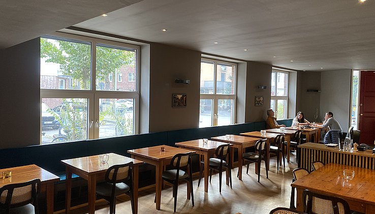ca. 120 m² Gastraum (offen, hell, ideal für unterschiedliche Tischlayouts)