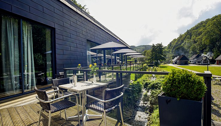 Museumsterrassen, Hauptgebäude mit Potential für Eventgastronomie mit Ambiente-Räumen und modern ausgestatteter Großküche, Außenterrasse