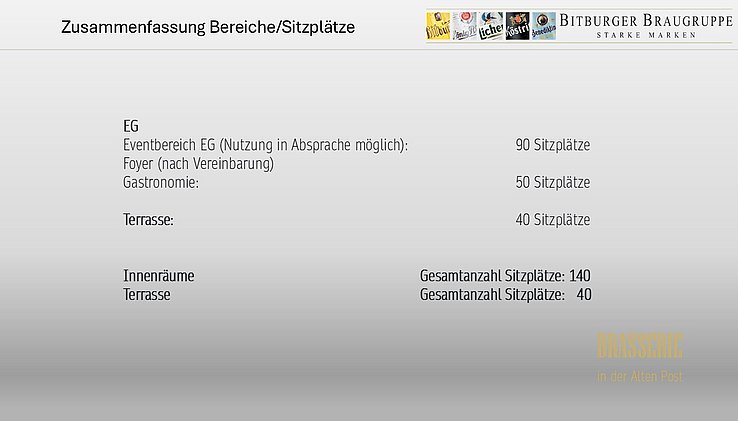107 m² 40 SitzplätzeBeschreibung der Ausstattung