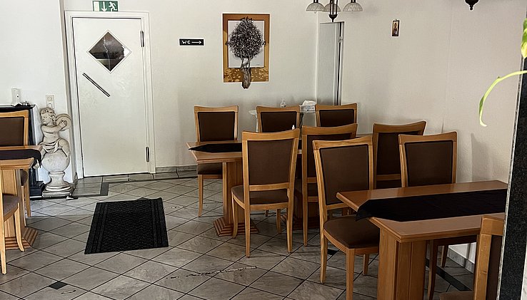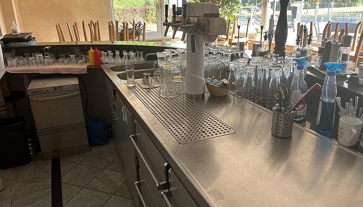 Das Restaurant hat einen großen Gastraum mit Platz für bis zu 100 Personen. Dazu gehören großräumige Lagerflächen mit zwei Kühlräumen und zahlreichen weiteren Kühlschränken & Stauraum. Die Küche, sowie der Gastraum und der dazugehörige Biergarten sind vollständig ausgerüstet.