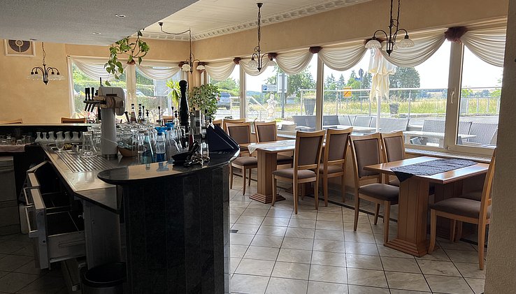 Das Restaurant lädt durch seinen offenen, großen und hellen Gastraum zum verweilen ein. Durch seinen großen Innen- & Außenbereich bietet die Gaststätte im Winter und im Sommer viele Sitzmöglichkeiten an.