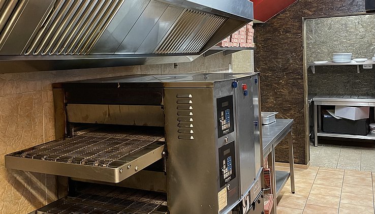 Komplett eingerichtete Pizzeria mit allen benötigten Geräten und entsprechender Infrastruktur für Lieferservice ausgelegt